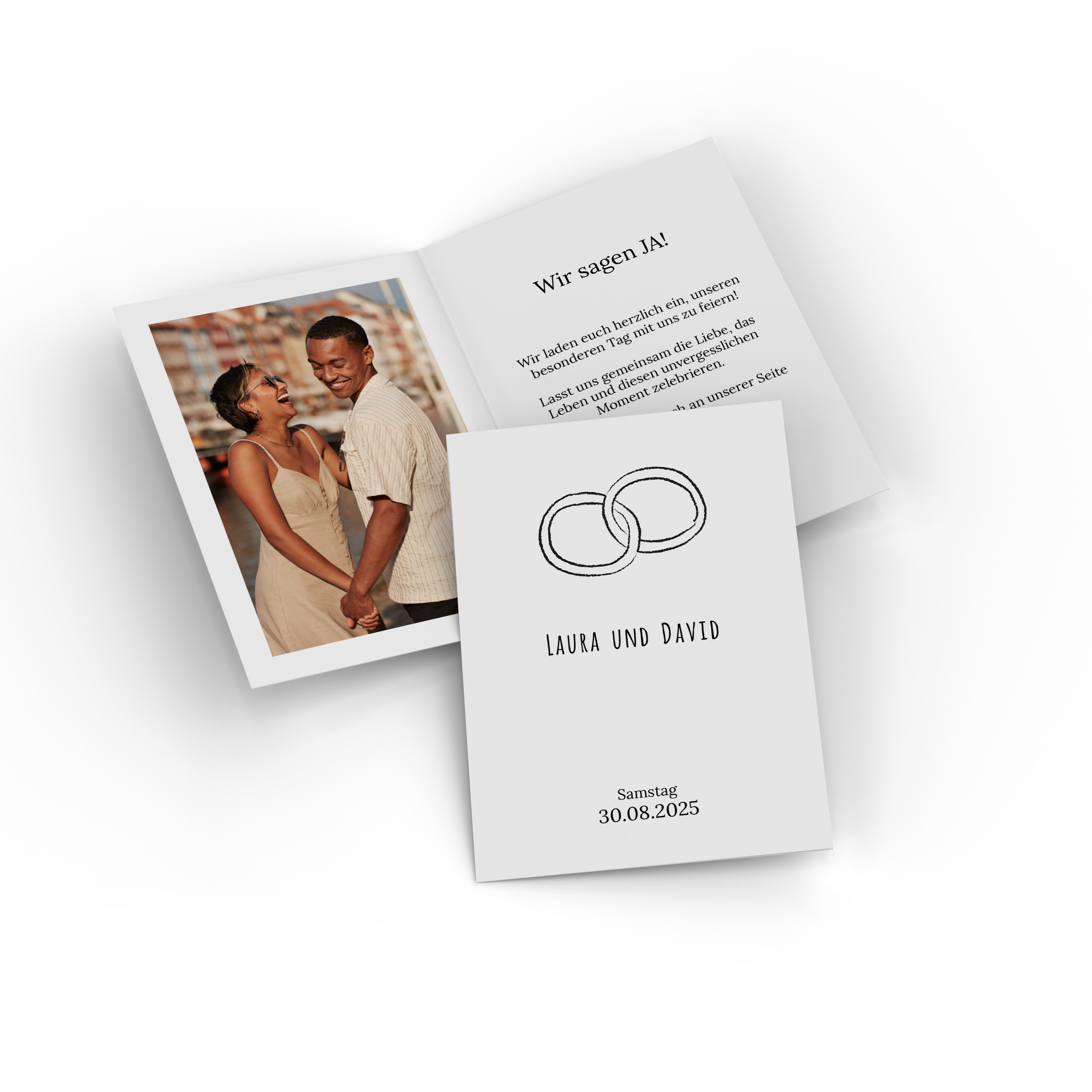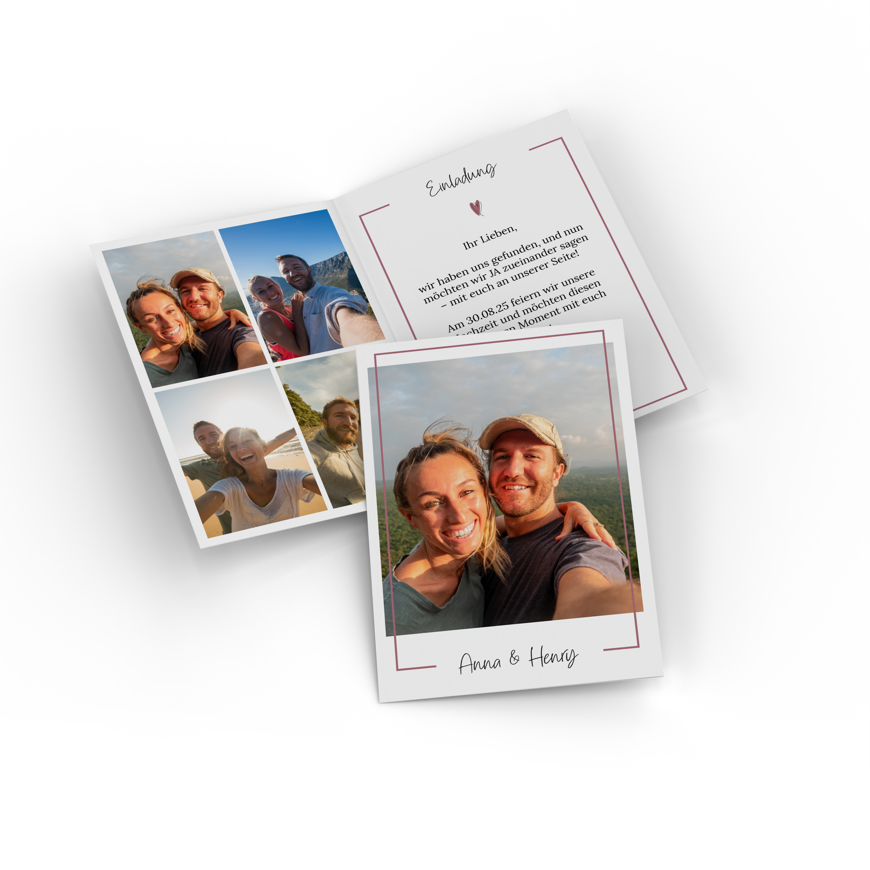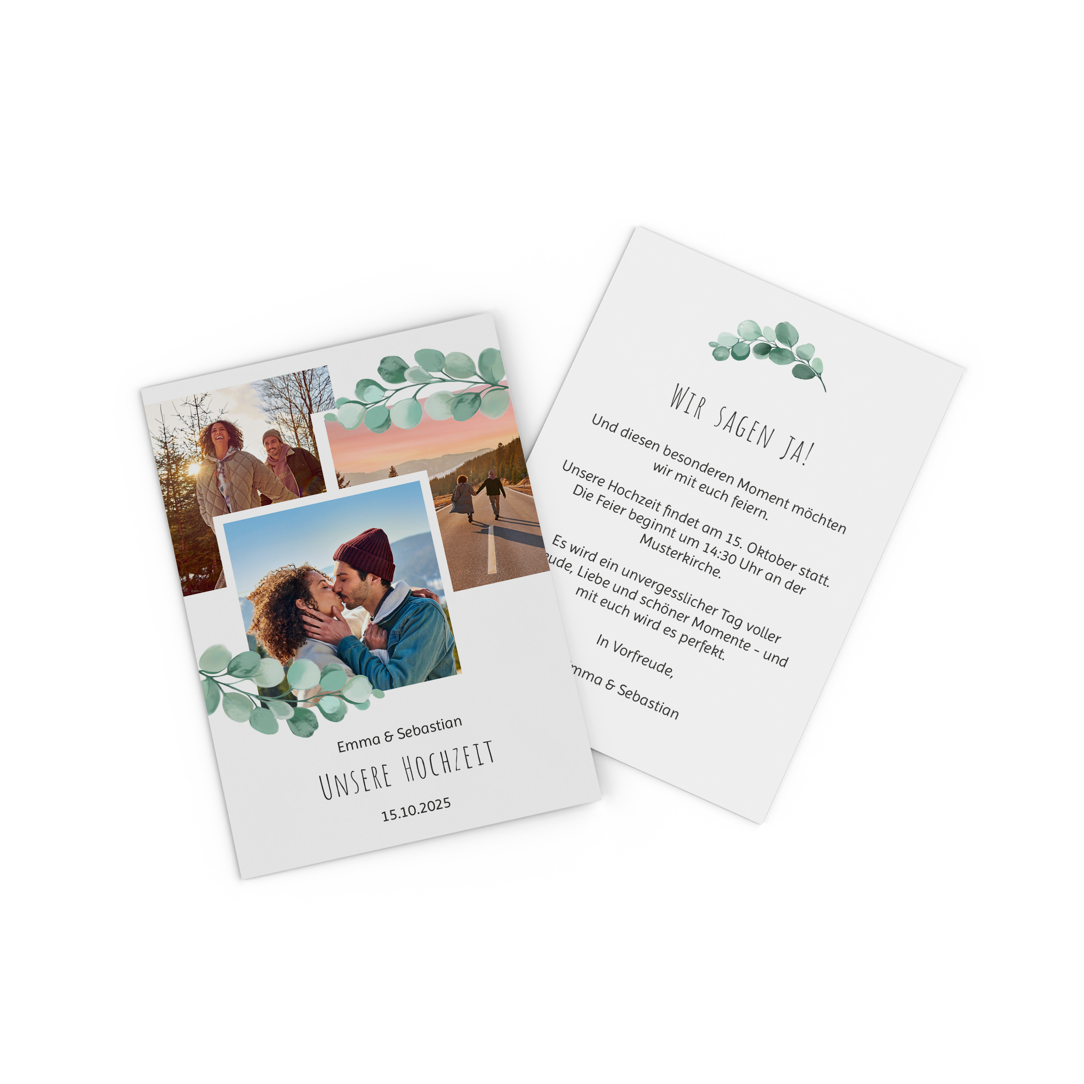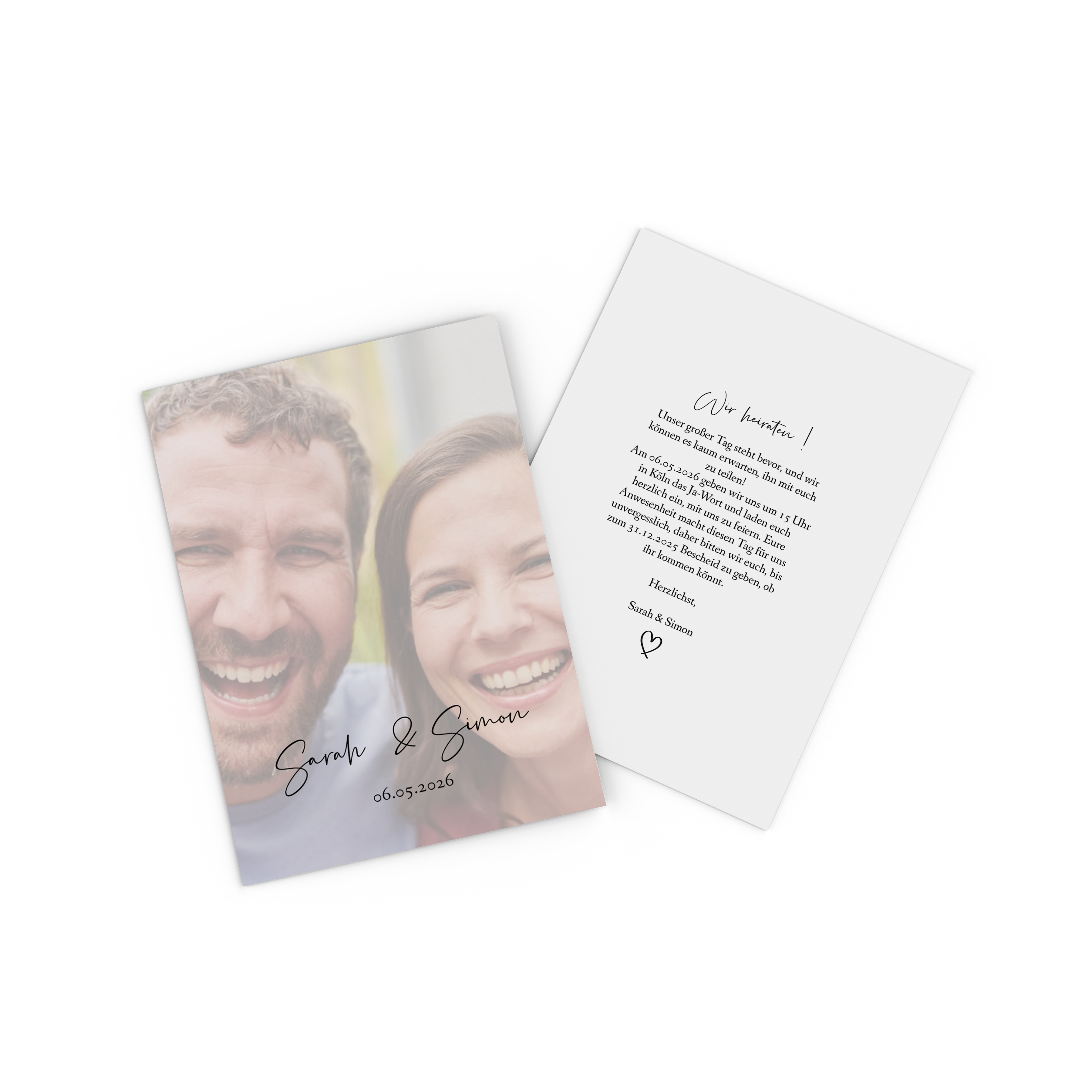 With Pixum, it is super easy to design wedding invitations online. Choose from numerous designs which you can adjust individually. Simply add text in the font of your choice in the design process. If you want, you can also create your wedding invitations freely. By using layouts, clipart and and backgrounds, you can come up with a design by yourself.