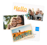 Exclusively in the Pixum App: Combine your holiday photos with stunning designs on real postcards. We'll send your card for you, and in just in a couple of days, it will reach your loved ones – anywhere in Europe.