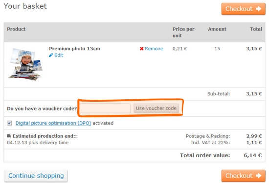 - If you click on "Use voucher code" the voucher is credited to your order.